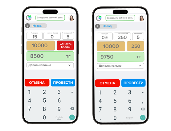 Клиенты получают скидки или бонусы в зависимости от настроек вашей программы лояльности.