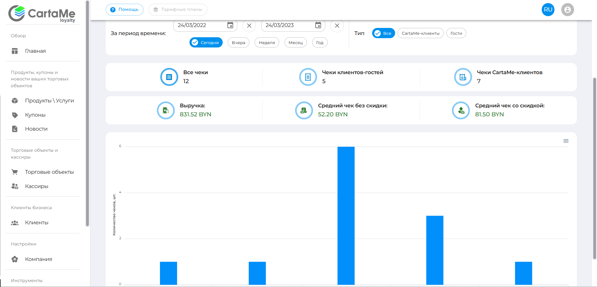 Получите доступ к подробной информации о продажах, покупательском поведении и эффективности вашей программы лояльности в режиме онлайн через удобный личный кабинет.
